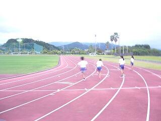 子どもたちは、400mトラックに慣れようと一生懸命に練習しました。