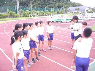 表彰された子どもだけではなく、記録会に参加した子どもたち全員に大きな拍手が贈られました。 最後に地区ごとに分かれて指導がありました。
