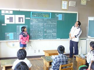 算数の授業では、小黒板を使って堂々と自分の考えを発表する子どもの姿を見ることができました。