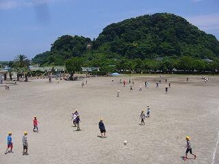 今日のような暑い日でも、昼休みの運動場は子どもたちでいっぱいです。