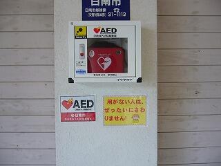 これまで校舎内に設置していたAEDを体育館前に移設しました。