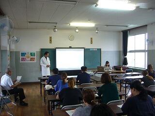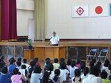 まず、本校の養護教諭が児童の歯の実態について報告した後、学校歯科医の房安先生に講話をしていただきました。