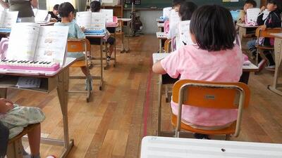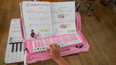 2年生の音楽では、「かっこう」をピアニカで練習しています。