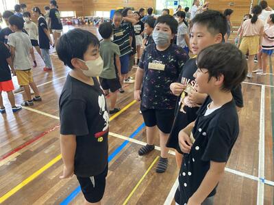事前に交流を図る目的で、桜ヶ丘小学校の体育館で、「交流学習」を実施しました。