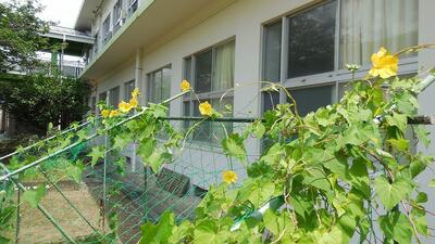 ヒマワリに気を取られていると、その横でヘチマも!!
