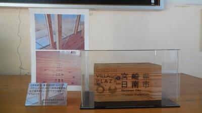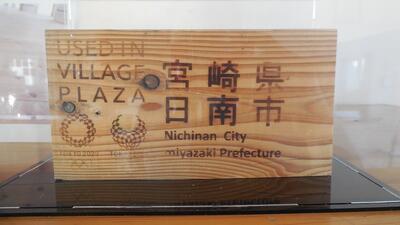 東京オリンピック・パラリンピックで使用された飫肥杉プレートが玄関前に登場です。