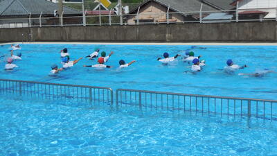 「着衣泳」の授業の目的は、泳ぐことではなく、「浮くこと」です。水難事故に遭いそうになったときに命を守るにはどうするのがよいかという学習です。