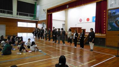 3月卒業した油津健児たちが、入学式後たくさん来校してくれました。