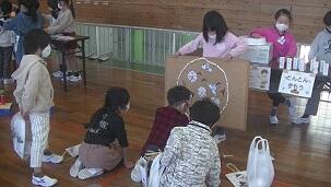 今日は2年生が1年生を招いて、おもちゃ祭りをしました。2年生の手作りおもちゃで1年生は大喜び。