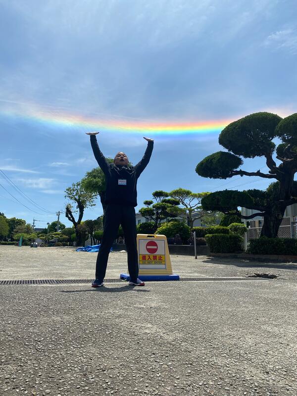 11時15分に、油津小学校上空に環天頂アーク(逆さ虹)が出現しました!