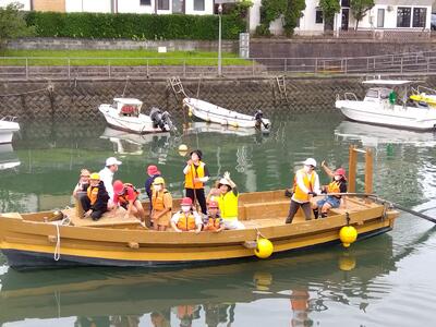 5年生は、チョロ舟に乗船しました。
