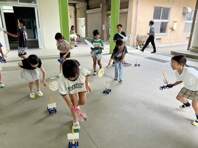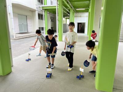 3年生は、理科で「風とゴムの力のはたらき」を学習しています。