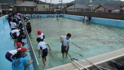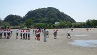 昨日夜に雨が降りましたが、先生方と児童が朝からスポンジを使うなど、運動場を整備してくれました。