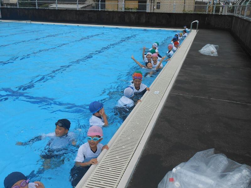 昨日、20日にプ-ル学習の仕上げとして着衣泳をしました。泳いでみるととても重くてうまく泳げない。きついなどの声が聞かれました。なかなか服を着たまま泳ぐことは実生活にはないと思いますが、非常の事態に陥った時など冷静に行動し、力を抜いて水に浮くことの大切さを知ることができました。