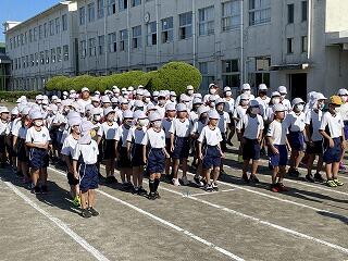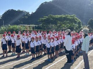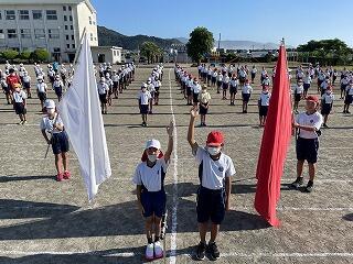 朝の活動の時間と、1時間目に全校体育を行いました。初めての全体練習でしたが、きびきびとした動きが見られ、24日(日)の運動会がとても楽しみです。白団団長の田中朝日(たなか あさひ)さん、赤団団長の比江島迅人(ひえじま はやと)さんの二人の選手宣誓も立派でした。団長・副団長・リーダー、6年生・5年生を中心に、みんなで協力して、スローガンの、「記憶に残る運動会 皆で優勝の道を 切り開こう」を目指してすばらしい運動会にしていきましょう!