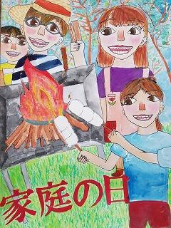 左の作品は、宮崎県の「明るい選挙ポスター」募集で、特選を獲得した6年生の濵田雄心さんの作品です。右の作品は、宮崎県の「家庭の日ポスター」募集で、優秀賞を獲得した6年生の玉田笑愛さんの作品です。2つの作品ともにとても素晴らしいですね。本当におめでとうございます。図工の授業を担当している三角先生からのコメントです。
