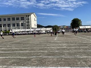 今日は運動会の予行練習でした。全校児童一生懸命取り組みました。