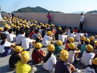 子どもたちは、避難放送を聞き素早く園田団地の屋上に避難することができました。