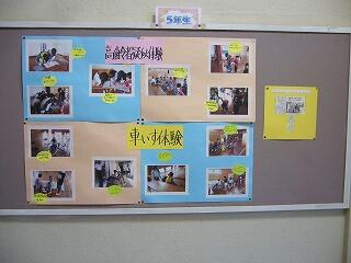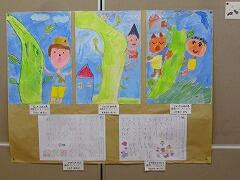 学年の掲示板には、絵や習字、体験の様子などが掲示してあります。