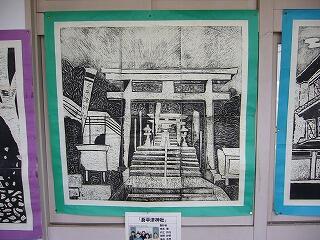今、家庭科室横の廊下に版画の作品が掲示してあります。