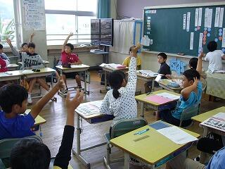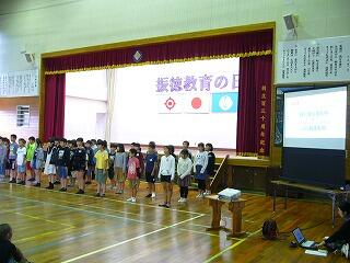 子どもたちには、全校放送で東日本大震災の概要について説明するとともに、「東日本大震災でたくさんの方が亡くなられたことを悲しむとともに、天国で幸せでいらっしゃることを願い、油津小でも今から目を閉じてお祈りしたいと思います。」と話し、一斉に黙祷をしました。