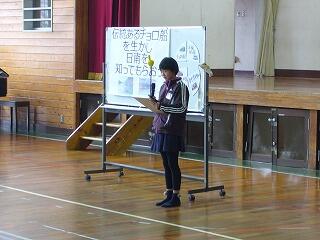 本番の写真はありませんので、学校での発表のときの写真を載せておきます。