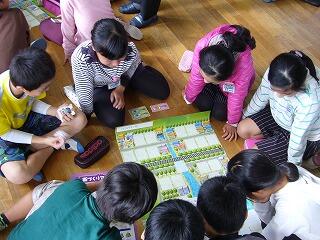 1~6年生で縦割りチームを作り、チーム対抗で行いました。