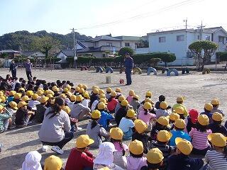 今日は、地震、津波に対する避難訓練を、ひなもり保育園と恵愛幼稚園と合同で実施しました。