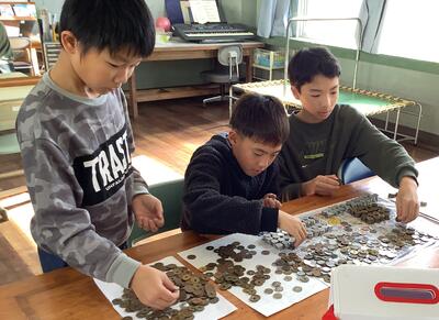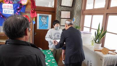 社会福祉協議会の方が来校され、全校児童を代表して計画委員会の委員長・副委員長より集まった募金を贈呈しました。