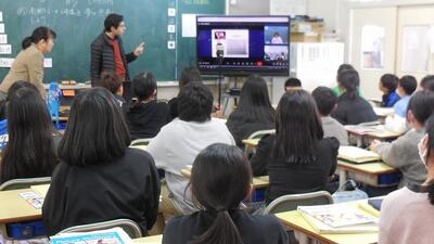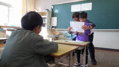 6年生は、外国語活動で、南郷小学校との交流をしました。