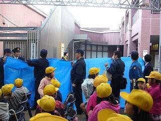 そこで、警察の方が、子どもたちのためにずっと風よけをしてくださいました。