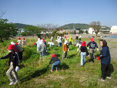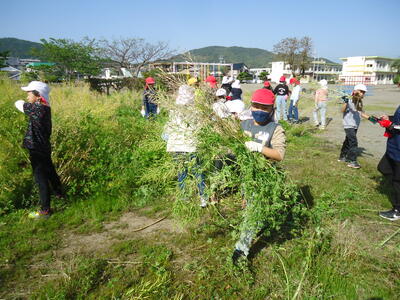 4年生は、さとうきび畑の整備を草抜き中心にがんばりました。5月からは、肥料をまいたり、畝を作ったりします。苦戦しましたが、みんなの力を合わせてきれいにしてくれました。