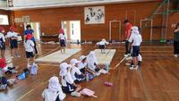 昨日夜に雨が降りましたが、先生方と児童が朝からスポンジを使うなど、運動場を整備してくれました。