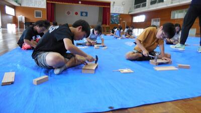 飫肥杉を使って、鉛筆立てを作りました。森林の働きや大切さに関するお話も聞けました。