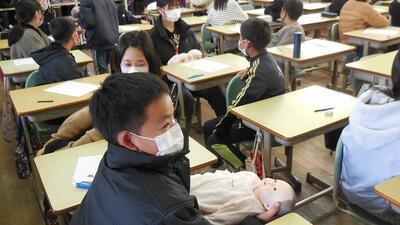 講師の先生のお話をしっかり聞くことができました。赤ちゃんの人形を抱いた感想はどうだったかな?