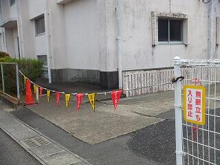 体育館とコンテナ室の前にある西門には、ロープを張っています。ロープが細く、わかりづらかったので、昨日目立つように、「注意」(黄)と「立入禁止」(赤)と書いてあるカードを取り付けました。特に、スポーツ少年団や夜間に体育館を使われる団体の方々は、お気を付けください。また、最後に帰られる方は、ロープを張っていただけると、ありがたいです。すみませんが、よろしくお願いいたします。