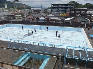 新型コロナウイルス感染症拡大防止のため、油津小学校では、今のところ水泳指導ができていませんが、プールの濾過機点検のため、きれいな水に入れ替えなければなりません。そこで、今日の昼休み、職員と5・6年生のボランティアでプール清掃をしてくれました。きれいになったプールを見ると、本当に気持ちいいものです。ボランティアをがんばってくれたみなさん、ありがとうございました。
