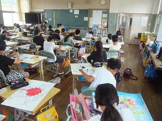 3年生は「絵の具+水+筆=いい感じ!」です。水彩絵の具を使って、自分の思いのままに描いています。