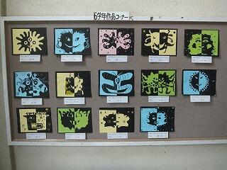 その他にも1年生は以前紹介した「ちょきちょきかざり」、6年生は昨日紹介した「対称オバケ」、4年生は習字の時間に書いた「麦」という作品を展示しています。明日、明後日の参観日の際にはぜひお立ち寄りいただき、子どもたちの作品をごゆっくりご覧ください。