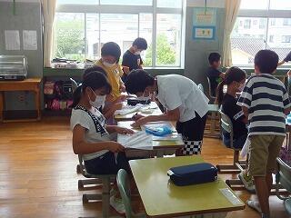 5年生が家庭科で「返し縫い」の練習をしていました。初めてのことなので、なかなか難しそうでしたが、早く終わった子は、まだできていない子に優しく教えていました。針と糸を使えることはとても大事なことですから、しっかり覚えてくださいね。
