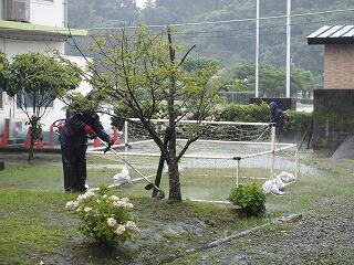 今日は朝から雨が降っています。そんな中、環境整備員さんがカッパを着て、草刈りをしてくださっています。いつも学校をきれいにしてくださり、ありがとうございます。