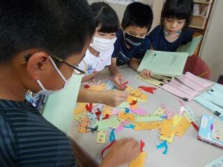 低・中・高学年別に、問題はそれぞれ4問ずつ。1問正解するごとに、スタンプがもらえ、4問全部終わると折り紙かしおりのプレゼントがもらえます。子どもたちは、夢中になって、挑戦していました。