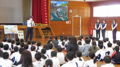 急な飛び出しをしないことや、自転車(ヘルメット付き)の安全な乗り方を教えていただきました。