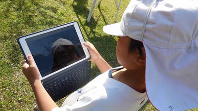 11時15分に、油津小学校上空に環天頂アーク(逆さ虹)が出現しました!