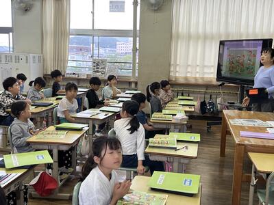 参観授業後、学級懇談会を行い、担任から指導方針等の話を聞いていただきました。