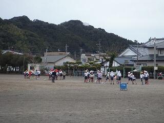 4年生は、3校時に運動場で体育をしていました。赤白に分かれて、じゃんけんゲームをしたり、長縄をしたりして、競っていました。赤も白もがんばれ!