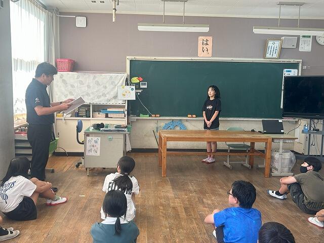 10月2日(木)に「日南市子ども議会」の伝達式を6年教室で行いました。8月8日(金)に本校代表として質問する予定だった6年2組の押川結衣さんに市長の答弁書が届きました。