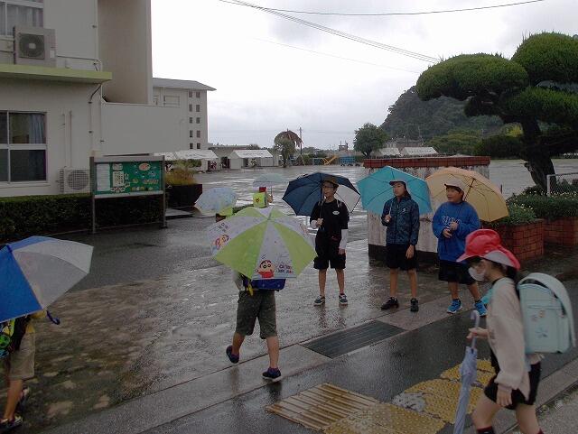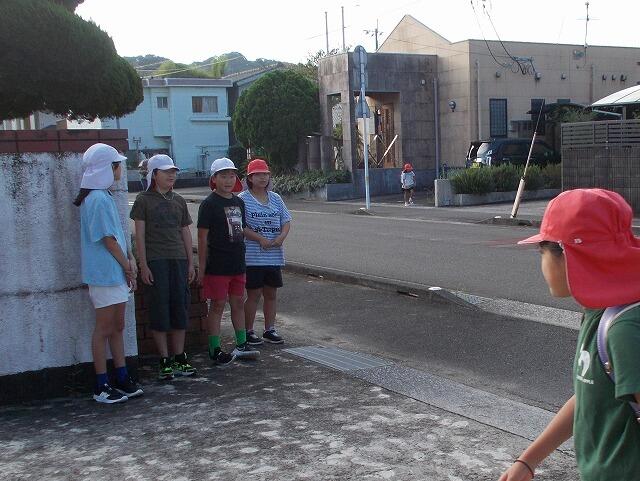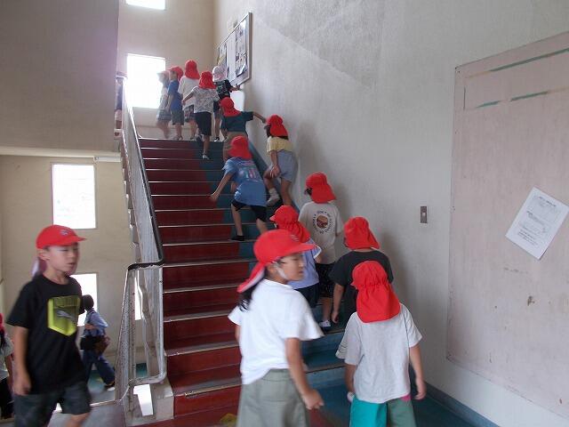 10月3日(金)14:00に日南市内の全公立小中学校において、第1回スクールシェイクアウトが実施されました。南海トラフ地震(震度7)を想定した訓練で、本校は周辺道路の液状化や陥没により高台等への避難が困難な状況を仮定し、3・4号棟(北側校舎)3階に避難をしました。(垂直避難)どの児童も大変真剣に取り組むことができました。