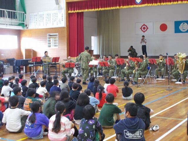 11月7日(金)は油津小学校の150回目の創立記念日でした。創立記念を祝う行事として自衛隊の皆様をお招きして音楽鑑賞会を実施しました。サプライズで油津小校歌を演奏していただき、全児童で斉唱しました。自衛隊の皆様、素敵な演奏をありがとうございました。