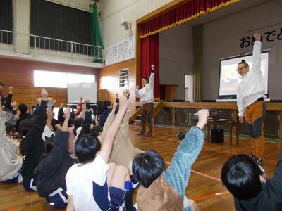 2月10日(火)に、4年生を対象に「日本のひなた宮崎 国スポ・障スポ」大会イメージソングダンス出前授業が行われました。日南市で開催されるレスリング競技をイメージしてグループごとにオリジナルの振り付けを考えました。授業の終わりには、最後に曲に合わせて4年生全員でオリジナルダンスを笑顔いっぱいで踊りました。